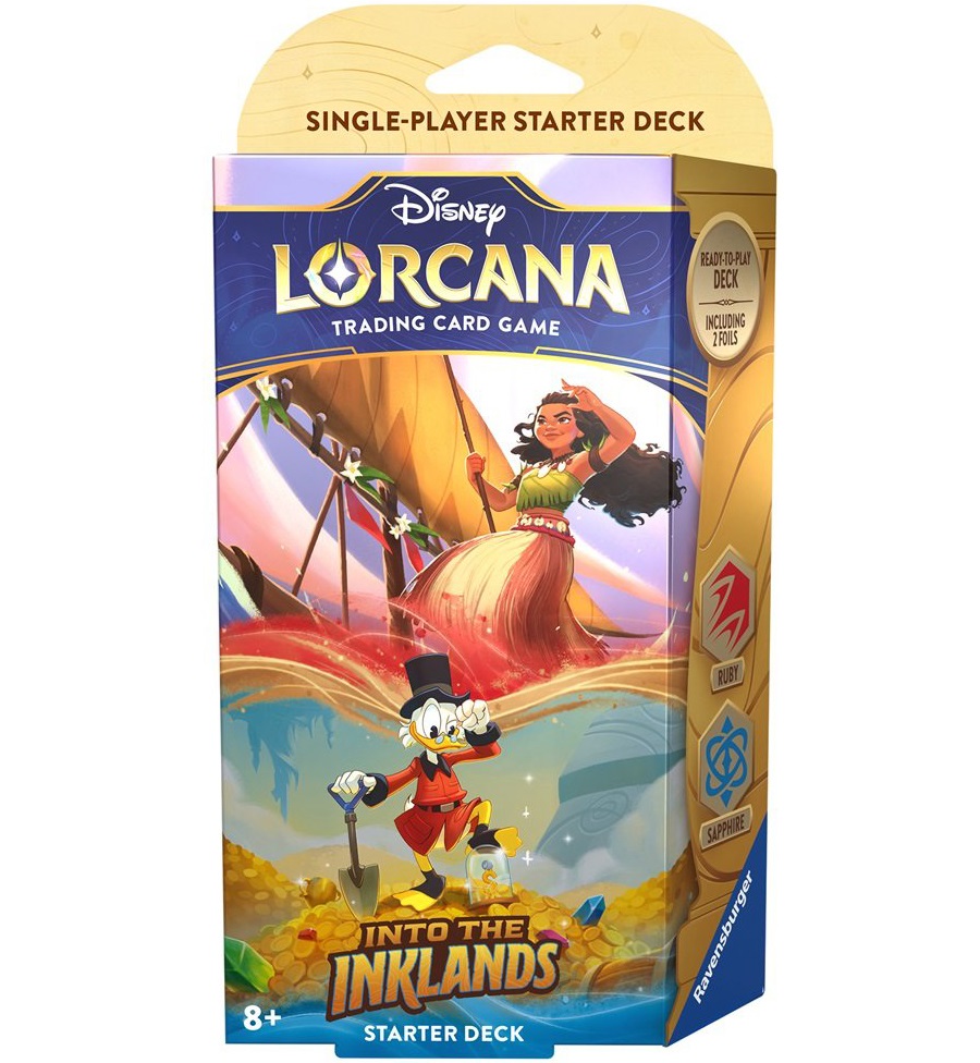 To play the Disney Lorcana TCG, each player will need a deck of 60 cards. Ready-to-play starter decks contain a preconstructed deck with a specific card list. If you’re new to trading card games, or if you want to experience the game with a deck designed and tested by Team Lorcana, this is a good place to start.