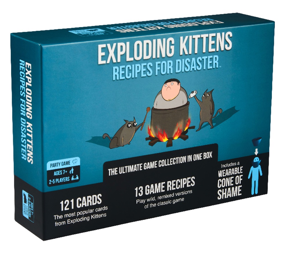 It includes a curated deck of 121 of our favorite cards from Exploding Kittens and all of its expansions plus a new rendition of the beloved Cone of Shame. Use the deck to assemble the 13 included Recipe Booklets and unlock new game modes like a version of the game with ONLY Imploding Kittens or a quick 2-minute lightning game. The box also includes 5 blank Recipe Booklets so you can design your own gameplay experience.
