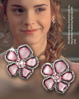 Hermione’s earrings measures approx. 1.5cm x 1.5cm (including posts) and is made of base metal and pink crystal. Earrings come in a black card presentation box (10cm x 7cm x 3cm), decorated with the Harry Potter logo, and internal velvet drawstring bag.