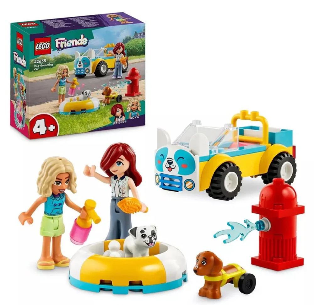 The LEGO Friends Dog-Grooming Car (42635) vehicle playset makes a great gift idea for kids aged 4+ who love animal care toys. Girls and boys can enjoy hours of imaginative play with the 2 mini-dolls, 2 dog figures, a buildable car, pool and lots of pet care accessories.