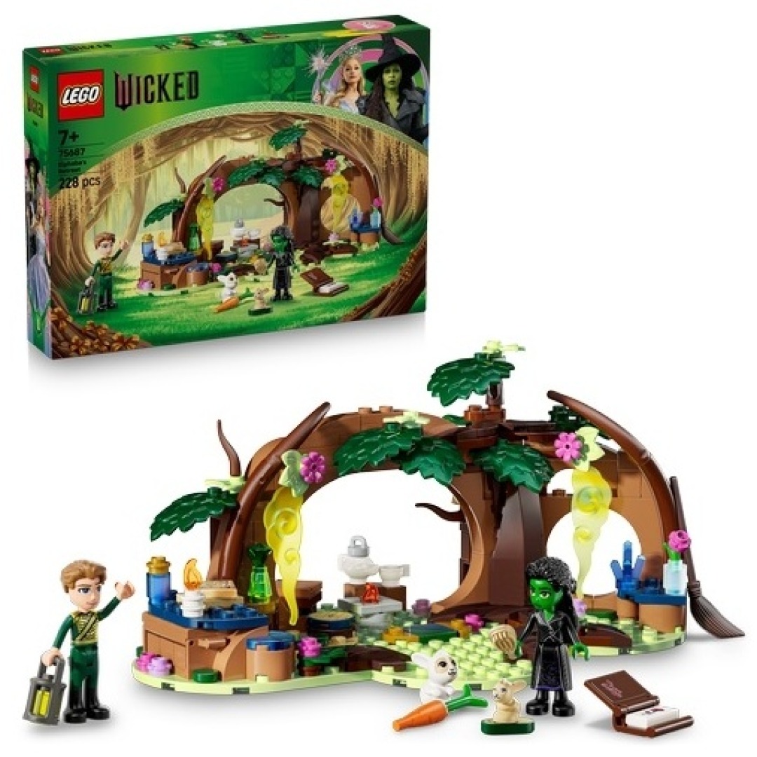 Reveal a world of role-play magic with Elphaba’s Retreat (75687) creative toy for kids aged 7 plus. Girls, boys and Wicked fans recreate a special movie moment as they build Elphaba’s toy forest hideout in LEGO bricks.