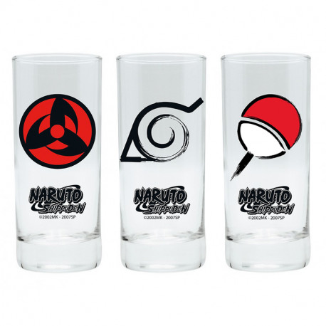 There is no denying the influence of the Uchiwa family on the village of Konoha. ABYstyle decided to honor them in this set of 3 Naruto Shippuden glasses in which you will find the symbol of Konoha, the symbol of Uchiwa and the symbol of the Mangekyô Sharingan.