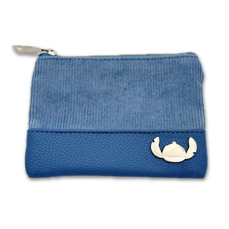 Disney Stitch & Angel Blue Corduroy Fashion Duo Pouch Wallet 14x10x1cm